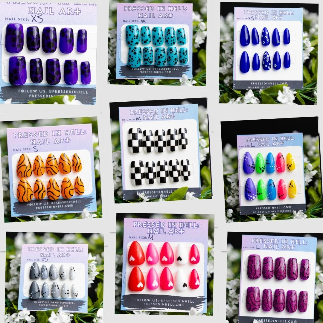 Pressed in Hell ships hand-painted press-ons directly to your door, ready to apply in minutes whenever you actually have time.