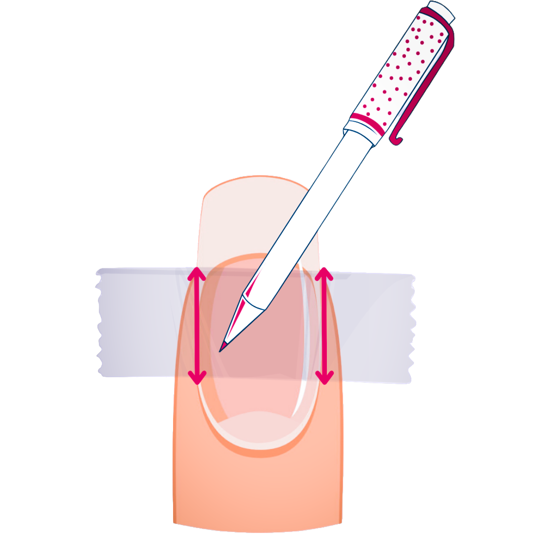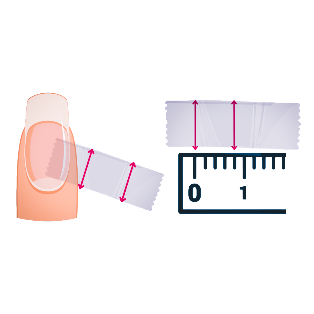 Place transparent tape across the widest part of your natural nail. Press down where the nail meets the skin to make a crease.